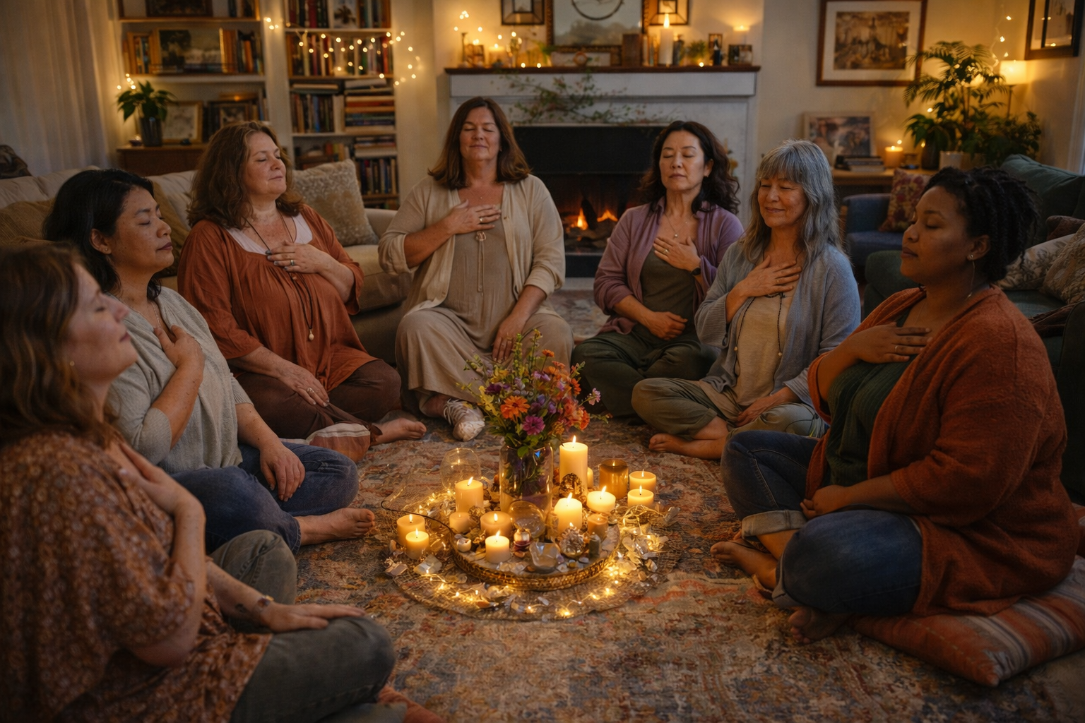 Each gathering is completely personalised and may include sound-baths and relaxation, candles and intention‑setting, gentle grounding practices, creative making and time to laugh and connect.